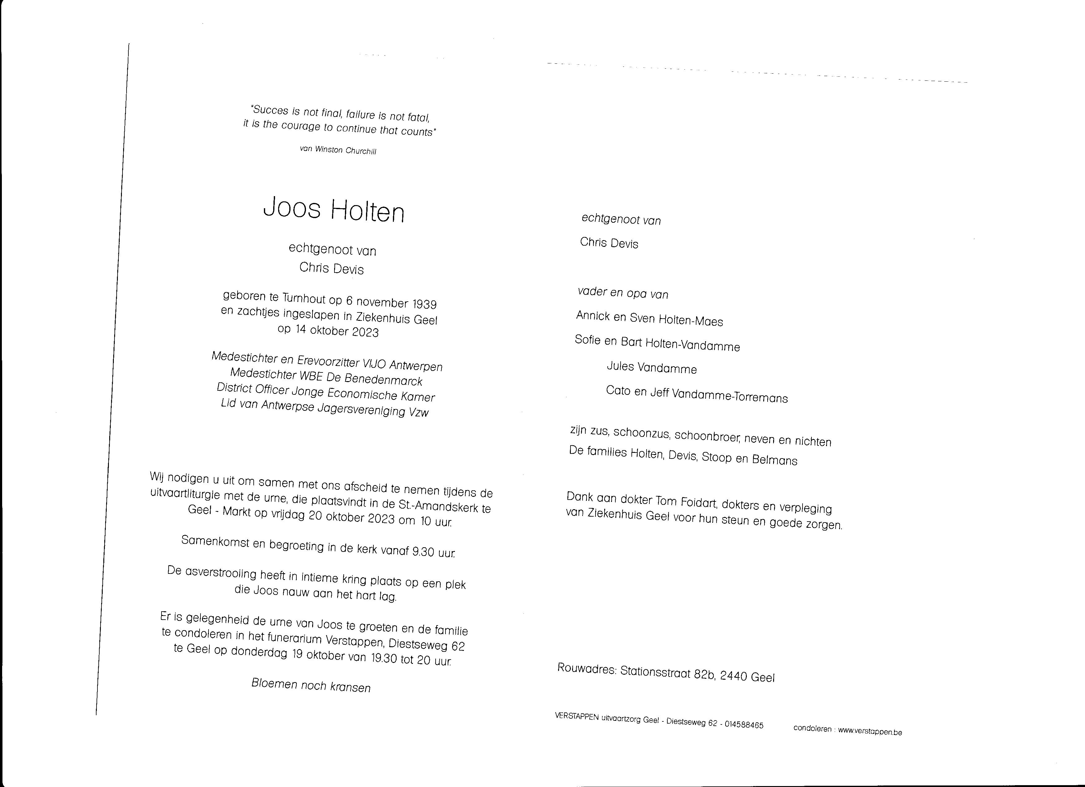 Overlijden/Décès senator/senateur Joos Holten